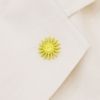 そして、ジャンネットのアイコンである、太陽マークのラペルピンが飾られ、クラシカルな趣きの中に、どこか開放的な華やかさを持ち合わせた、アイコニックなフェイスが魅力的です。