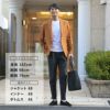 フロントは、バランスの良い深さのVゾーンを作り上げた2つボタンフロントと、ベーシックなノッチドラペルで構成されており、クリーンなニュアンスで綺麗目な印象を漂わせました。