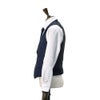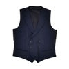 ストライプ柄のデザインを施し、ネイビー色で仕立てたクラシカルなジレ。パーティーや結婚式のみならず、オフィスワークでも充分な品格さを表現した一着に仕上がっております。