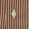 薄手でたおやかな高級感溢れる素材感でありながらも、しっかりと色付いたブラウンとホワイトのストライプ柄により、透け感の心配なくとてもシャープなスタイリングを完成させる事ができるオリジナルシャツです。