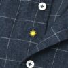 手縫いの“鳥足”ボタン付けや裾ガゼット等、細部に宿る匠な伝統技術が粋な存在に。アイコン太陽マークの刺繍が第二ボタンまでをオープンにすると覗き込み、大人男性の品格を格上げします。