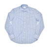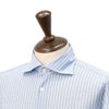 カラーは、サックスブルーにホワイトのストライプが走るカラーリング。爽やかさと清潔感を併せ持ち、装いにハンサムな印象を添える配色です。