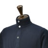 柔らかくも自立したスタンドネックが特徴で、程よい厚みのある襟が首元に優しく沿い、フェイスラインをすっきりと見せます。シンプルなスタイリングにこの襟元が加わることで、全体が引き締まり、都会的な印象へと導きます。