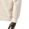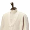 かぎ針編みをイメージしたストライプ柄のラッセル素材を採用しており、表糸には甘撚りのオーガニックの糸を使用しているため表面は柔らかいタッチになり、肌に当たる裏面の糸は綿とリネンラミーの混紡糸を撚糸しておりドライタッチな風合いに仕上がっております。