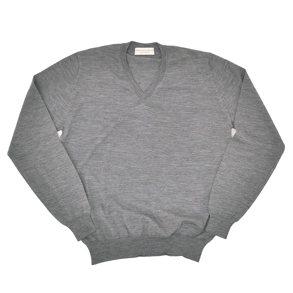 FILIPPO DE LAURENTIIS / フィリッポ・デ・ローレンティス が編み立てた、細やかなひとつひとつの編み目が繊細に並び、全体へプレーンで知的な雰囲気を齎した、Vネックセーターをご紹介致します。