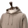 ドローコードの先にメタルパーツをあしらったフードデザインは、カジュアルさとさりげない上品さをプラス。無駄を省いたベーシックな佇まいが、12ゲージの繊細なウールカシミア素材の上質さを引き立て、大人の着こなしに相応しいハイクラスな雰囲気を醸し出しています。