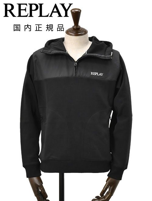 REPLAY / リプレイ より登場した、モダンなハーフジップフーディーをご紹介致します。切り替えパターンに異素材を組み込み、アウトドアな機能性と都会的なシャープさを融合させた一枚です。