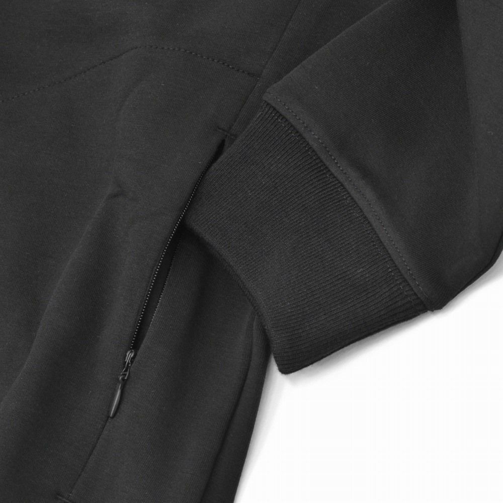 フードにはドローコードを備え、ハーフジップの開閉でレイヤードから防寒まで自在に調整可能。デザイン性の高さと実用性を兼ね備え、日常のカジュアルスタイルに新鮮なアクセントを齎します。