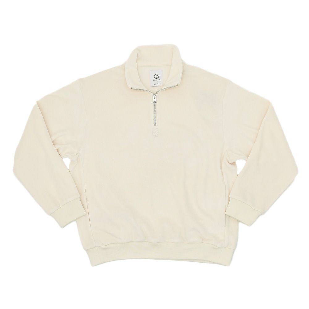 SEAGREEN / シーグリーン より登場した、パイルハーフジッププルオーバーのご紹介。スポーティーなディテールを持ちながらも、落ち着いた穏やかさを感じさせる佇まいが魅力の一枚です。