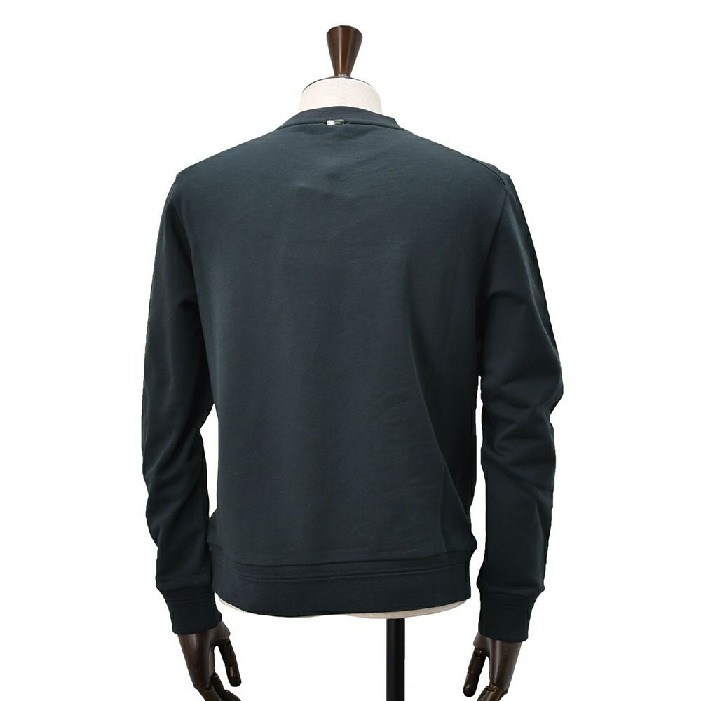 素材は、上質なコットンを少し薄手に編み立てたスウェット生地。光沢をプラスするマーセライズ加工、型崩れを緩和するサンフォライズ加工を施した、ヘルノらしいハイクオリティな仕上がりが自慢です。