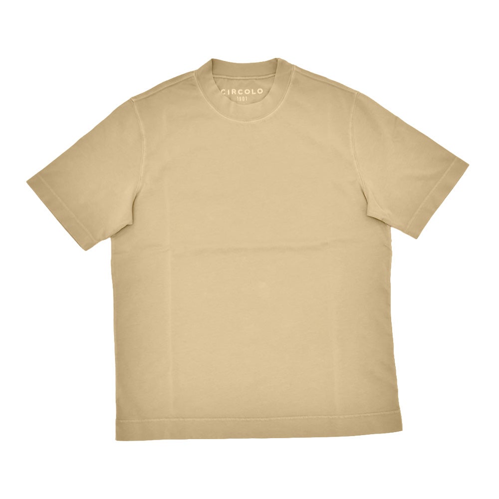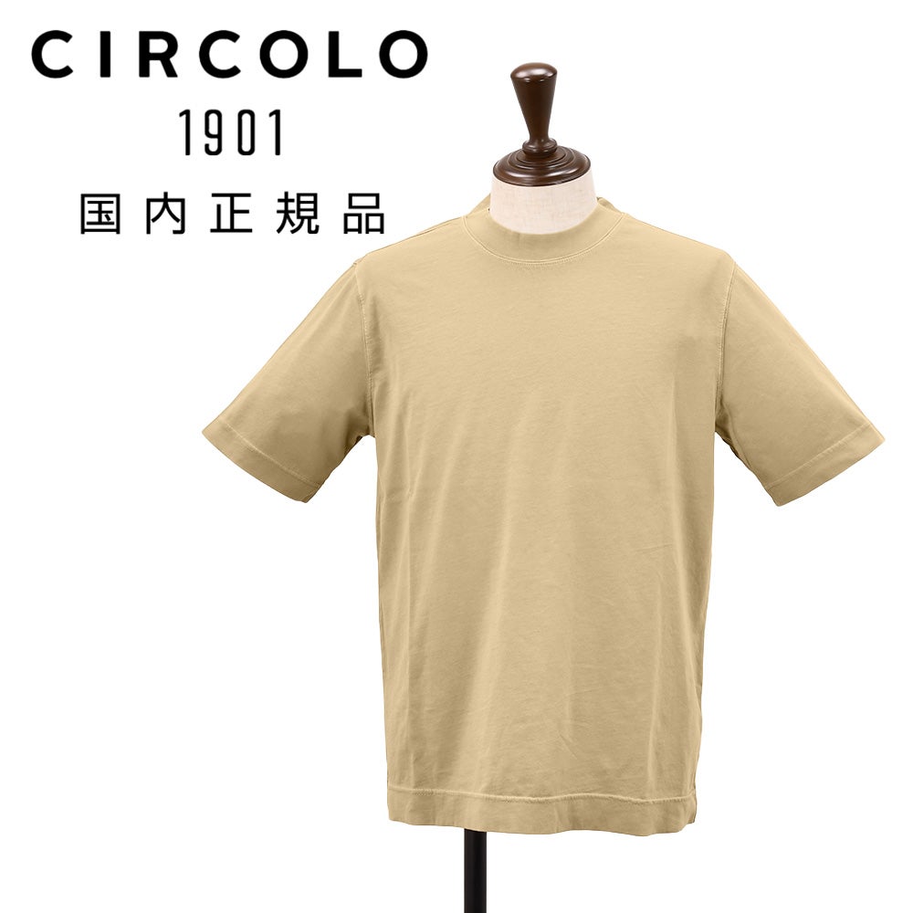 チルコロ CIRCOLO1901 半袖Tシャツ メンズ セミモックネックカットソー コットンジャージー ベージュ ガーメントダイ 無地デザイン レギュラーフィット 国内正規品 オクテット名古屋