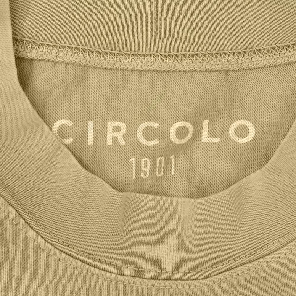 チルコロ CIRCOLO1901 半袖Tシャツ メンズ セミモックネックカットソー コットンジャージー カーキベージュ ガーメントダイ 無地デザイン レギュラーフィット 国内正規品 オクテット名古屋
