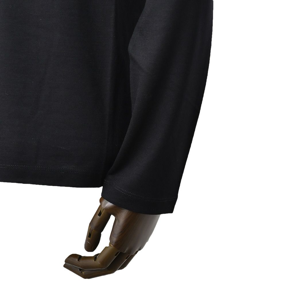 素材は、スーパー100'sの繊細なウール糸を天竺編みに仕立てた、上質なウールジャージー。クリア仕上げを施した細番手の糸を24ゲージで丁寧に編み立て、ふんわりとした柔らかさと適度な厚みを兼ね備えた、贅沢な質感に仕上がっています。
