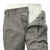 ウエストにはバックゴムを施し、ベルトレスでも自然に収まる美しいフィット感を実現。フロントは二段階で留められるパンツェリーナ仕様を採用し、安定感のある構造を備えています。さらに両サイドに配されたバックルで微調整が可能となり、細やかなサイズ対応力を発揮する工夫が嬉しいポイントです。