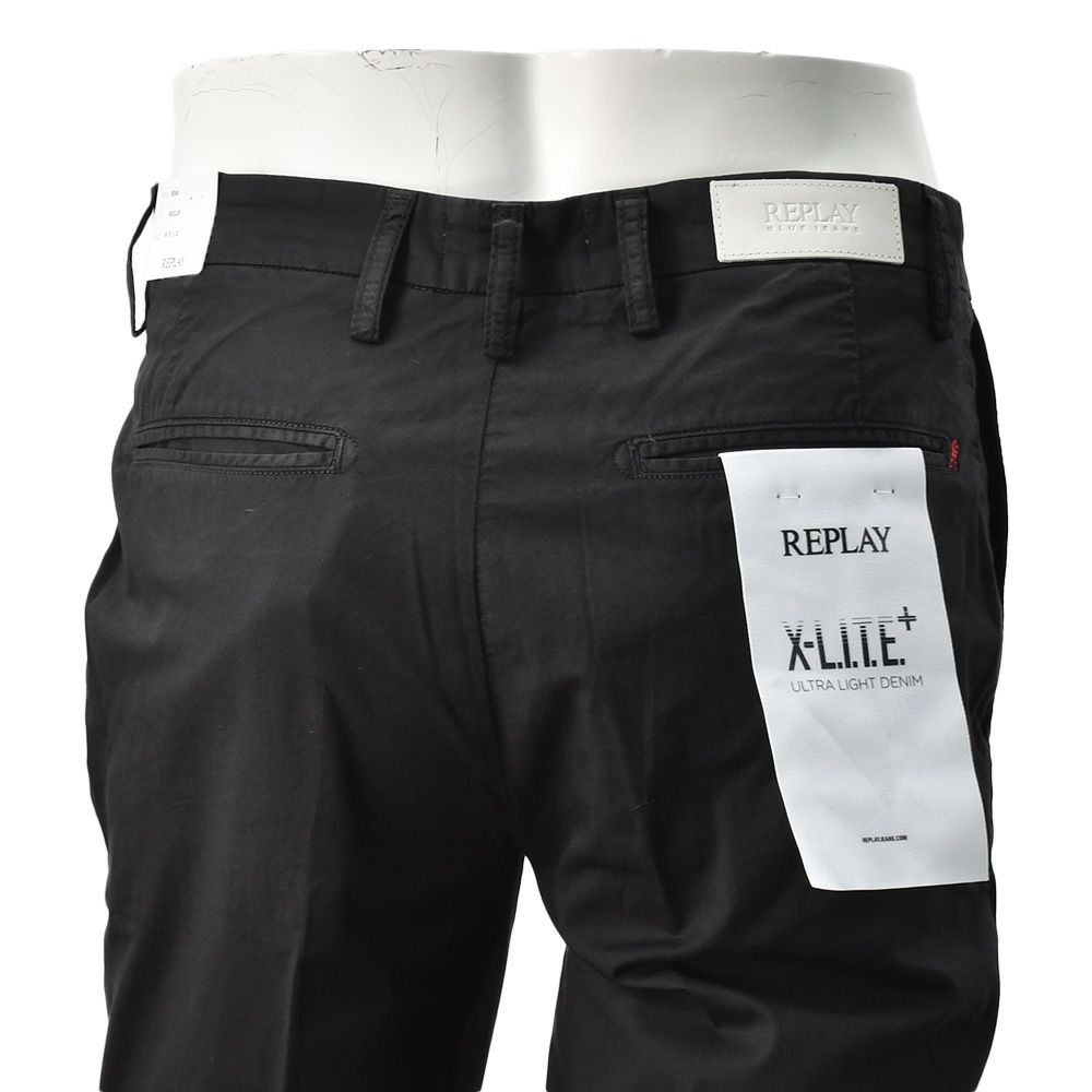 リプレイによる、春夏シーズンに軽やかに履きこなす事のできる様、ライトオンスに仕上げたX L.I.T.E +シリーズからのパンツが到着致しました。今季新たに登場した、オーソドックスなフェイスを、暑い季節にもたっぷりとお楽しみ頂ける、清涼感漂うスリムレギュラーフィットのチノパンツをご紹介致します。