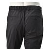 シルエットは、ゆとりを持たせたやや余裕のあるワタリから急激にテーパードするスリム設計。ゴムウエストであり、余裕のあるワタリ分量によって座った時でも快適であり、ストレスなく着用できるのも魅力です。
