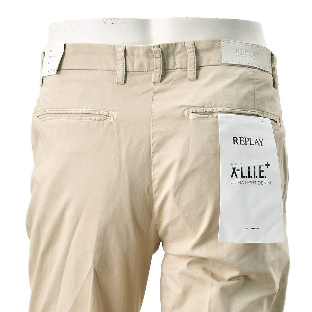 リプレイ REPLAY チノパンツ メンズ BENNI ベニーモデル X-L.I.T.E.+シリーズ コットンストレッチ ライトベージュ レギュラーテーパードシルエット ライトオンス 軽量 国内正規品 でらでら 公式ブランド