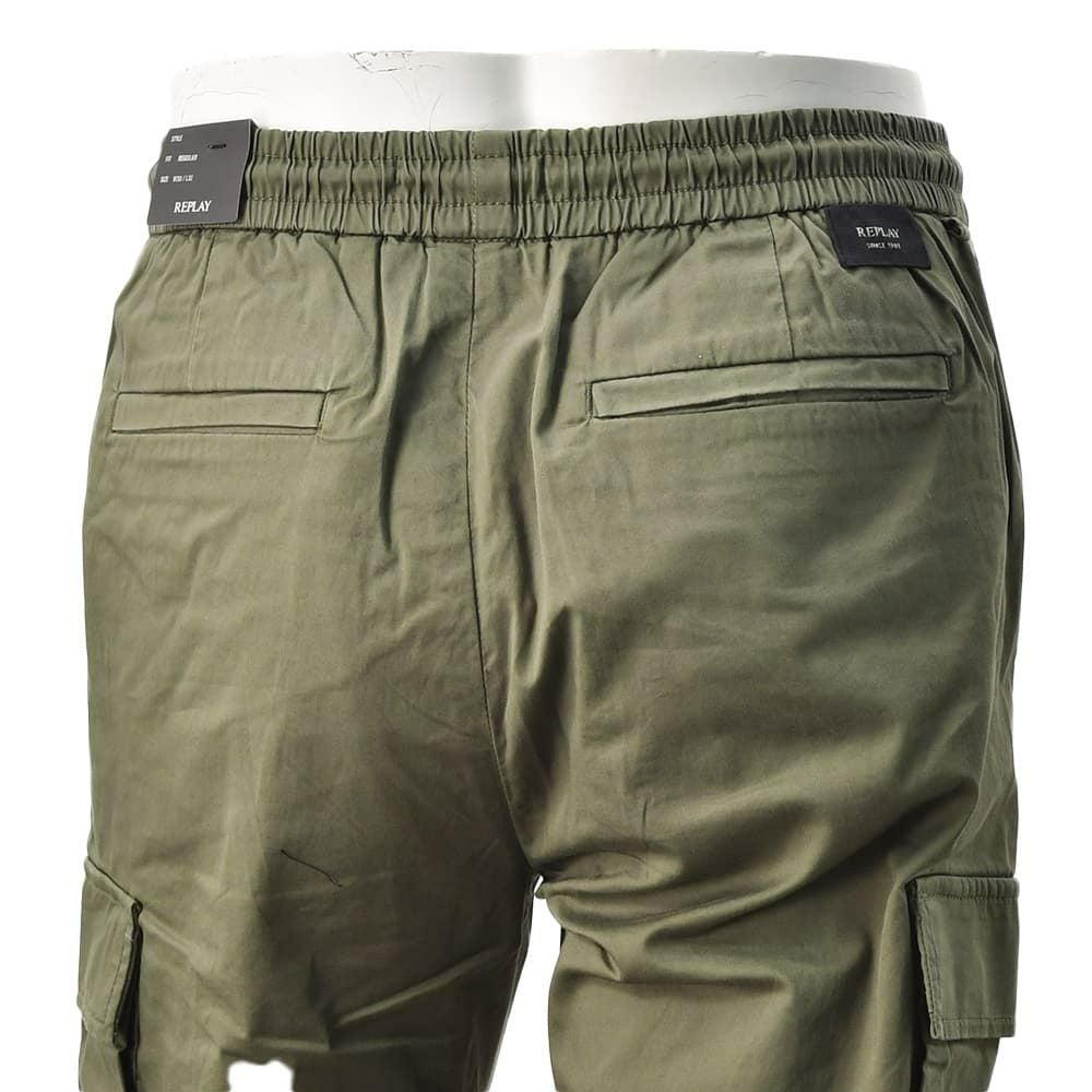リプレイ REPLAY カーゴパンツ メンズ M9015 ストレッパンツ カーキグリーン ライトオンス テーパードシルエット ゴムウエスト ドローコード ワンプリーツ 国内正規品 でらでら公式 ブランド