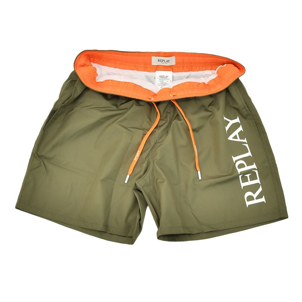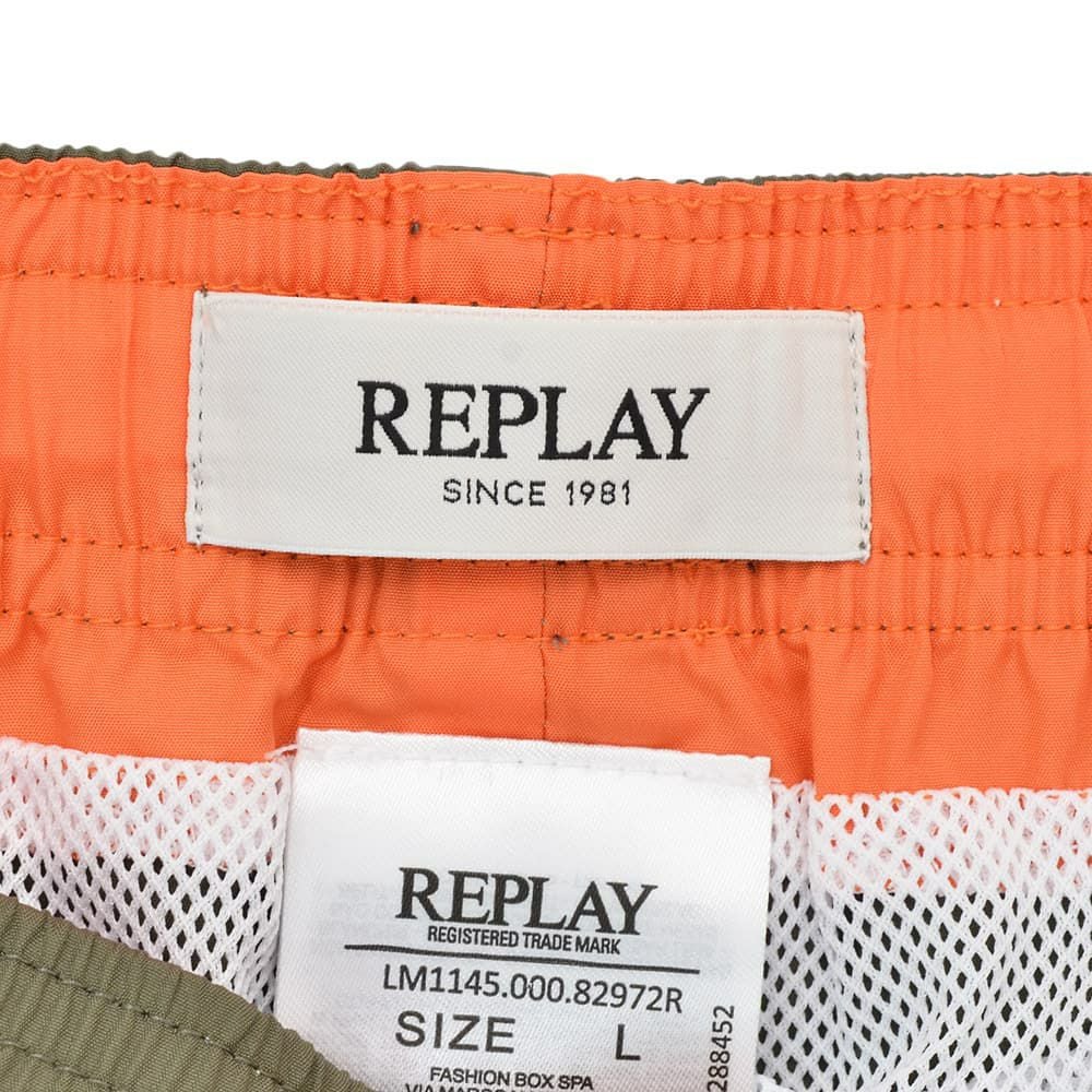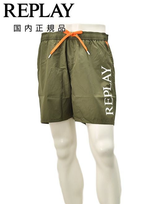 【返品交換不可】リプレイ REPLAY スイムパンツ メンズ 水着 ハーフパンツ オリーブグリーン ポリエステル ショート丈 LM1145 国内正規品 でらでら公式 ブランド