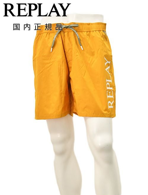 【返品交換不可】リプレイ REPLAY スイムパンツ メンズ 水着 ハーフパンツ オレンジ ポリエステル ショート丈 LM1145 国内正規品 でらでら公式 ブランド