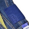 ウォッシュド加工によって浮かび上がった色落ちに、デニム本来の味わい深さが滲み出ていて、高級感が漂いながらも、どこかナチュラルさやヴィンテージライクな風合いも現れた素材感。