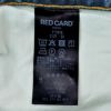 縫い糸もデニムクロスと同じ時間軸で良い色に変化してゆきますが、全体に施されているアタリやクラック 等の加工は、縫製後に、 世界屈指のデニムウォッシュ工場に移し、 リアルな色落ちを実現する為、 特殊な薬品で幾度も洗いをかけ、ヤスリで削り、履きジワを再現するために生地を固定して洗い加工を 繰り返し仕上げられています。 これらの工程を手作業で行うことで、程よく履き込んだような色味と 立体感を表現することが出来ます。やりすぎず、 穿き慣らした感じを忠実に演出しているのが、最大の特徴。 さらに、ポケットのステッチや、バックパッチ等、デニム特有のアイコンを省く事で、 どこから見ても「RED CARD」と分かるようにとデザイナーの想いも含まれております。