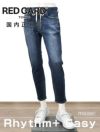 RED CARD / レッドカード の人気モデル Rhythm +(リズム プラス) をベースに、ウエストをギャザーゴム仕様へとアレンジしたイージーパンツ Rhythm + Easy(リズム プラス イージー) が登場。腰まわりはドローコード付きの2WAY仕様で、ラフに垂らしてカジュアルに、内側へ収めて上品に。スタイリング次第で表情を変える優れたイージーデニムパンツのご紹介です。