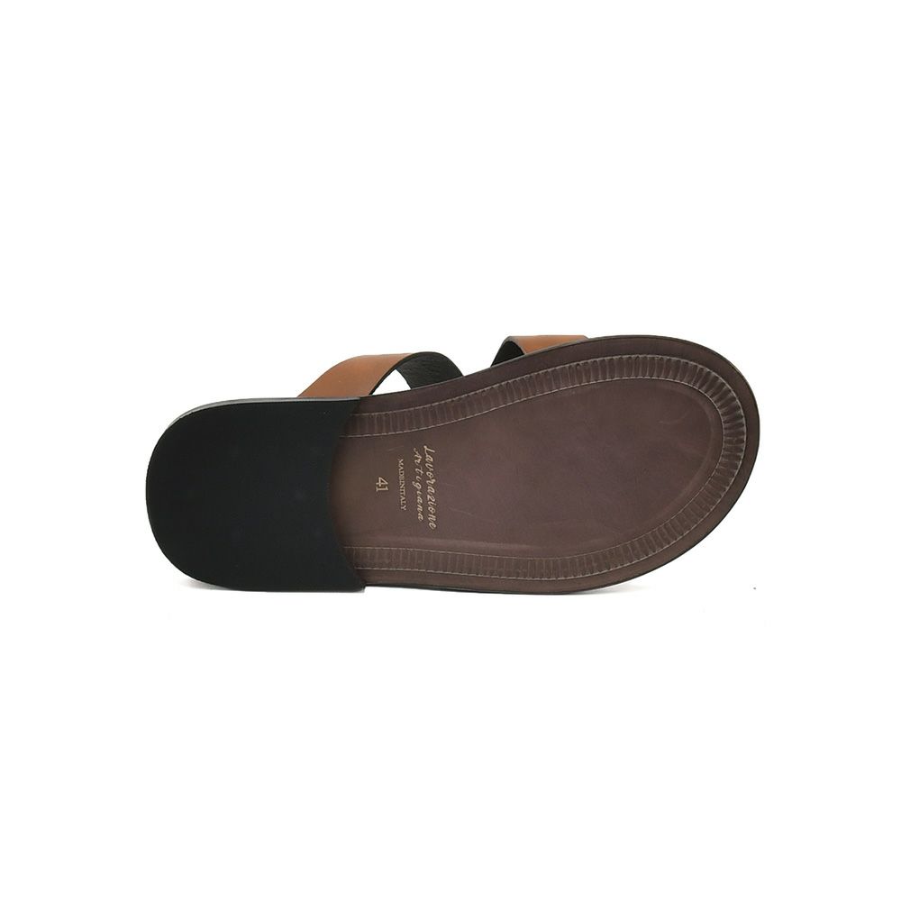 プレディビーノ PREDIBINO スリッパ型サンダル メンズ スエードレザー クロスデザイン 1730モデル ブラウン レザーソール フットベッド仕様 イタリア製 でらでら 公式ブランド