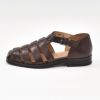 革メッシュ編みされたアッパーレザーと足首ストラップを組み合わせたリゾート感覚のサンダルです。