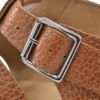 カラーはオレンジ系のブラウン、GOLDカラーと、ステッチとソールには透明感がある、軽やかに見えるミール(ベージュ系)カラーが組み合わされています。ポップ寄りの明るいブラウンカラーはサンダルによく似合い、全体のスタイリングも、より軽やかに仕上げます。