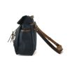 本体のトップ部分を二つ折りにして蓋に代用したフォルムが特徴。メインコパートメントの入り口が、折り畳むことでセーフティーになります。とても丈夫で、見たとおりに重厚。重みはほんのり感じられますが、レザーバッグと比較すると軽めに仕立てられています。アイコンとなる上蓋部分は、5穴の調整ベルト式と、ピンバーに抜きさし留めする様式。キャンバス地なのに、レザーのブリーフケースのように、きっちりと四角になる程の、形の美しい 現れ方が、本モデルの魅力の1つ。