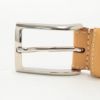 カラーは031番色のナチュラル。裏は柔らかなベージュ色。バックルはシルバー。裏面に品番、ブランド名と刻印