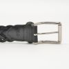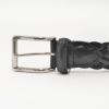 『軽やかでありながらも立体感を帯びた編み柄が風格を放つ編み込みレザーベルト』