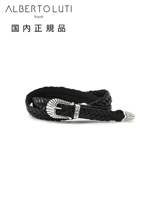 アルベルト ルティ ALBERTO LUTI レザーメッシュベルト メンズ プンターレ カーフスムースレザー ブラック 黒 25mm幅 ウエスタン真鍮バックル ブランド刻印 国内正規品 オクテット名古屋