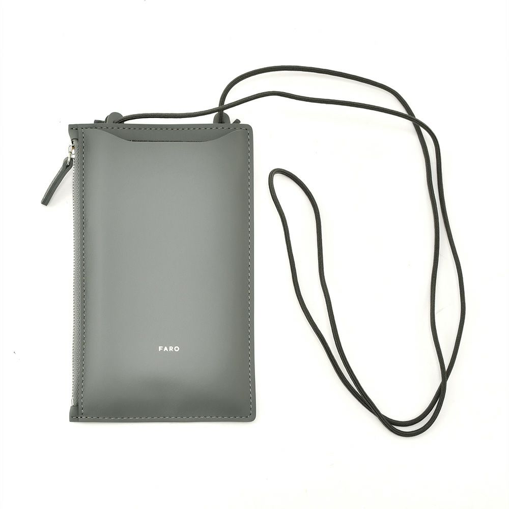 ファーロ FARO スマートフォンショルダーケース メンズ コンパクトウォレット機能 スムースカーフレザー グレー ブランドロゴデザイン カードポケット ジップファスナー開閉 国内正規品 でらでら公式 ブランド