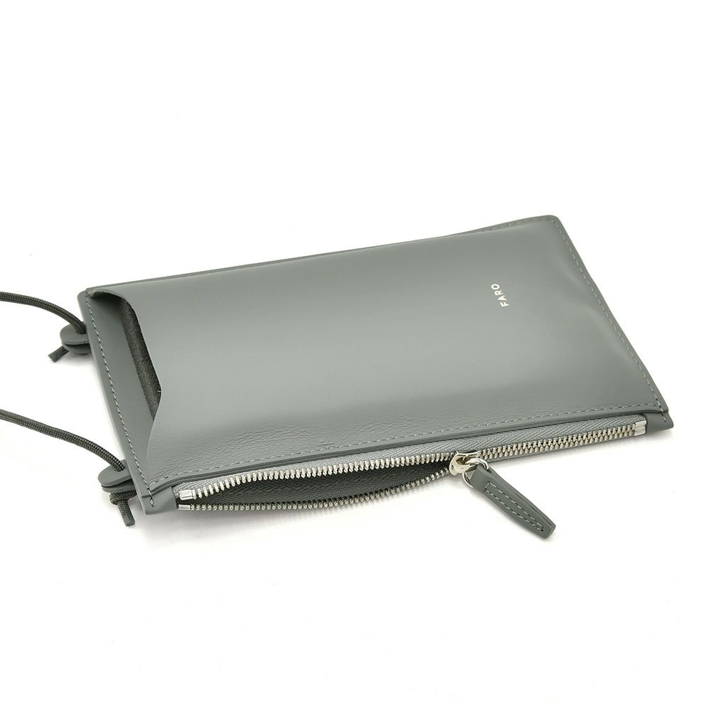 5. ファーロ FARO スマートフォンショルダーケース メンズ コンパクトウォレット機能 スムースカーフレザー グレー ブランドロゴデザイン カードポケット ジップファスナー開閉 国内正規品 でらでら公式 ブランド