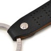 持ち手となるレザーパーツ部分には、遊び心としてブランドのロゴをパンチングで施しており、細部にまで職人ならではの技術を感じられる逸品。シルバーリングは、カギが落ちないように頑丈に固定されているタイプでありますが、付け替えはしやすい手軽なアイテムです。