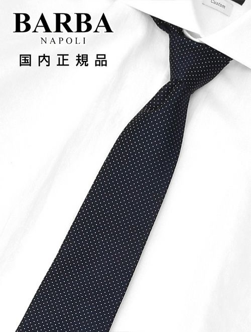『シックさとエレガントさの調和が取れたバルバ仕立てのドット柄シルクネクタイ』