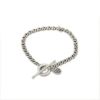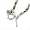 チェーンの揺れに合わせて光が反射し、袖口からさりげなく覗くたびにアンティークのような深みのある輝きを放ちます。シャープなフォルムと燻し加工のコントラストが絶妙な粋な風合いを生み、大人にふさわしい格好良さと品格を演出。マンテルパーツと共にそっと添えられたブランド刻印パーツが、控えめながら都会的なアクセントとして映えます。 行き過ぎない落ち着いた佇まいは、日常の装いに自然に溶け込み、単品にも重ね付けにも向いています。ギフトとしても喜ばれる、上質でモダンな印象を添える贅沢なアクセサリーです。