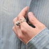 輪が繋がっておらず、間に隙間のあるデザイン”ハグ リング”。 指をハグ(抱擁)するように巻かれるこのデザインは、まるで体の一部のように、大切にされている事などを感じていただけます。また、指で軽く押す・広げる事でサイズ調整が可能です。