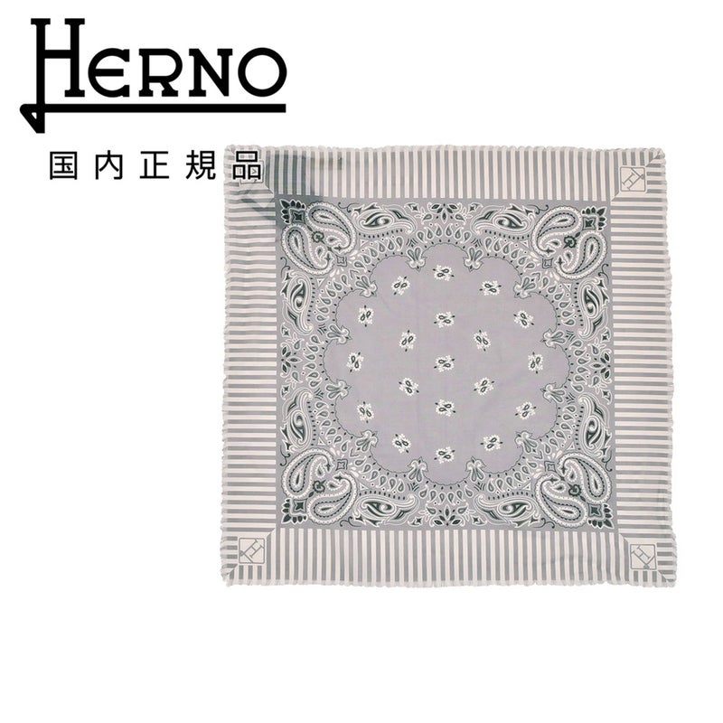 ヘルノ HERNO スモールスカーフ メンズ バンダナ ピュアコットン素材 グレー スクエア型 ペイズリー柄 モノグラムロゴ 58cm×58cm 薄手 FOU00001U 国内正規品 オクテット名古屋