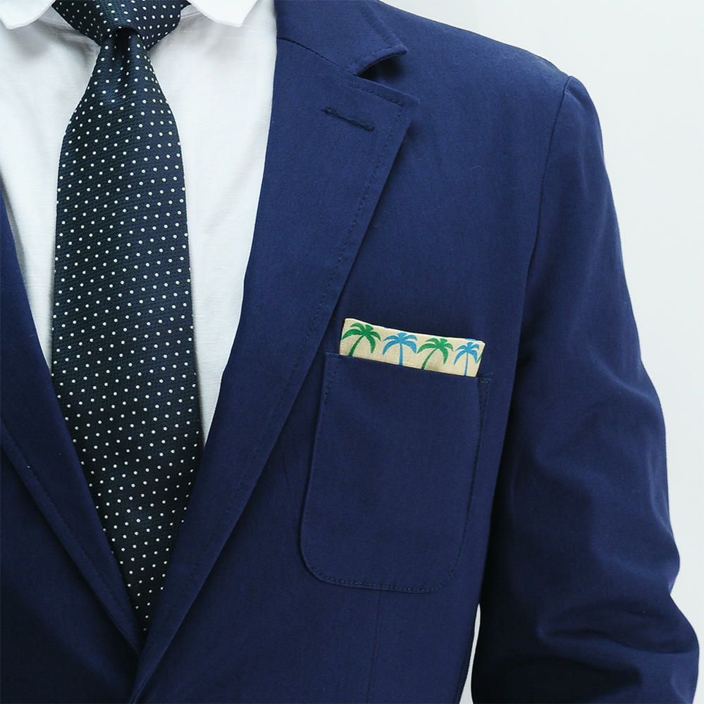 FERRUCCI FERRUCCI フェルッチ ミラノ 23-PALMA ヤシの木が海の爽やかさを彷彿とさせる リネンチーフ ポケットチーフ メンズ ドレスシーンにオススメ