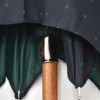 厚みも重みも、生地の張りもエレガントな光沢感もあるオンリーワンな傘。特にハンドルの厚みが、握り具合が、ずっしり重量感がいい!とご好評のイタリアメンズ傘の新作。 本品はネイビーを基調とし、グリーンドット模様の長傘。 ファブリックはポリエステルジャカード。 ハンドルは経年変化が楽しめるメープル。 外寸96cm、直径112cm。8本骨。傘袋付きです。 水玉はプリントではなく、