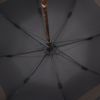 ウッド素材のダークブラウンの持ち手、そしてメタルパーツを用いた構成は、クラシックかつ洗練された佇まいを演出。片手で持った時のハットやマフラー等の装飾性や、手にしてカッコよく洒落るステッキのような、スタイリングの主役になる存在感もあります。