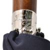 ウッド素材のキャメルブラウンの持ち手、濃紺の生地、そしてメタルパーツを用いた構成は、クラシックかつ洗練された佇まいを演出。片手で持った時のハットやマフラー等の装飾性や、手にしてカッコよく洒落るステッキのような、スタイリングの主役になる存在感もあります。