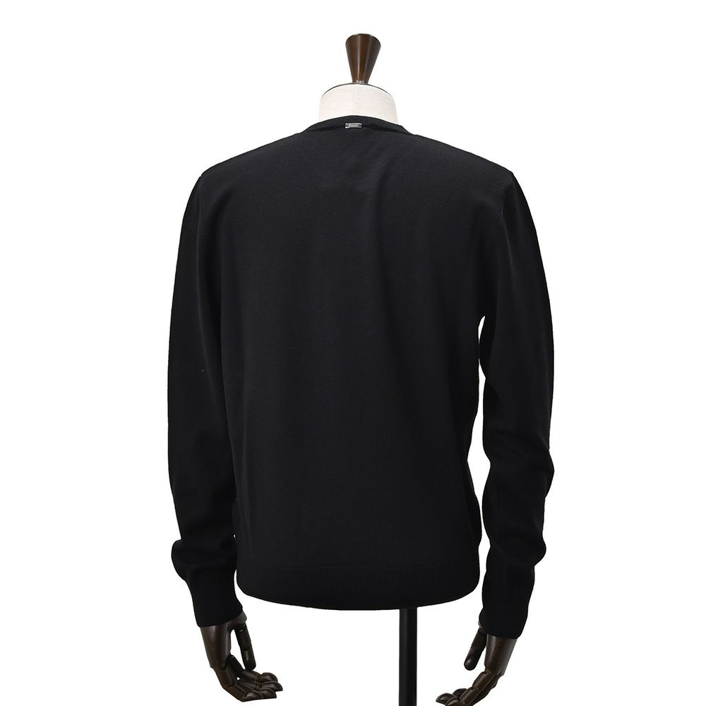 ヘルノ HERNO クルーネックニット メンズ ミドルゲージセーター MG000129U ウールコットン ブラック 黒 同色エンボスロゴ レギュラーフィット シルバープレート 国内正規品 でらでら 公式ブランド