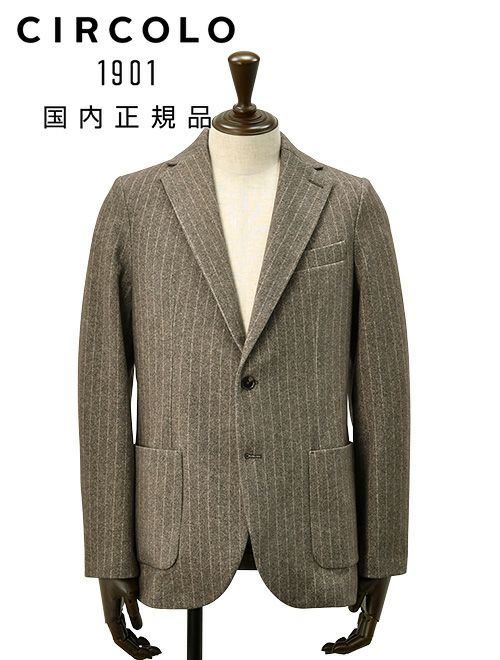 チルコロ CIRCOLO 1901 カジュアルジャケット メンズ ストライプ柄 2Bシングル コットンジャージ FELPA ブラウン 茶系 裏起毛 製品染め スリムシルエット 国内正規品 でらでら 公式ブランド