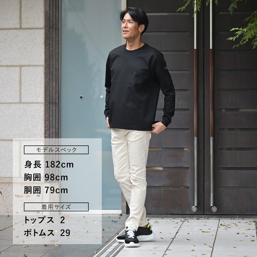 タトラス TATRAS 長袖Tシャツ メンズ クルーネックカットソー オスモ OSMO ブラック 黒 コットンジャージー 左袖同色ロゴワッペン リラックスシルエット 裾スリット 国内正規品 でらでら公式 ブランド