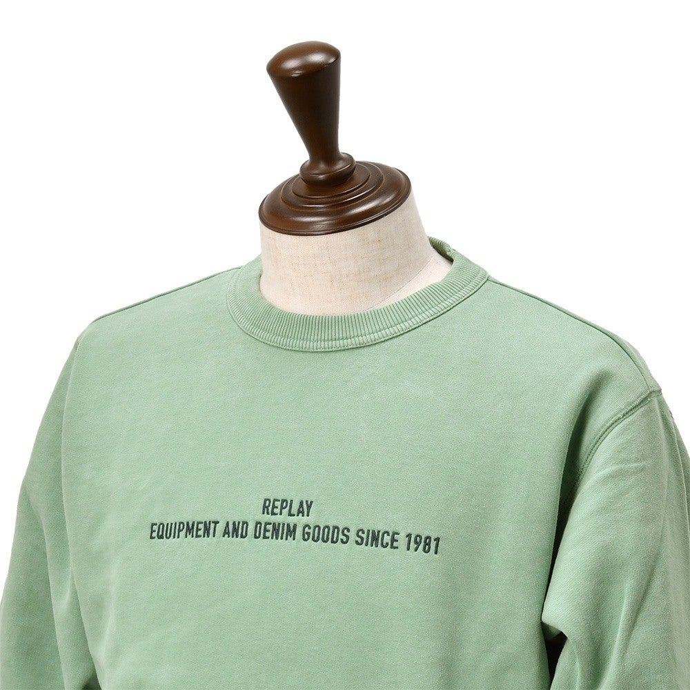 リプレイ  REPLAY 長袖トレーナー メンズ クルーネックカットソー ガーメントダイ ウォッシュ加工 コットン 綿100% グリーン 緑 ミント 国内正規品 でらでら 公式ブランド