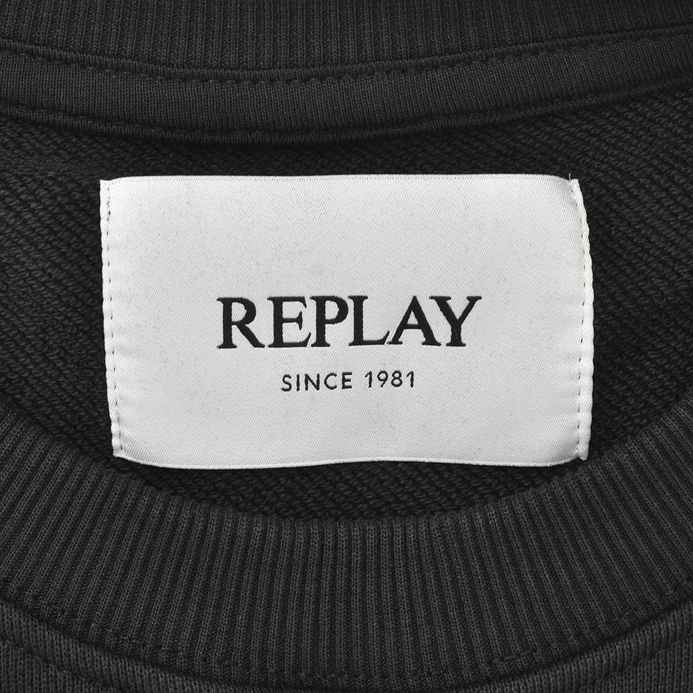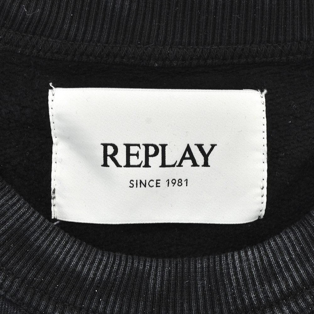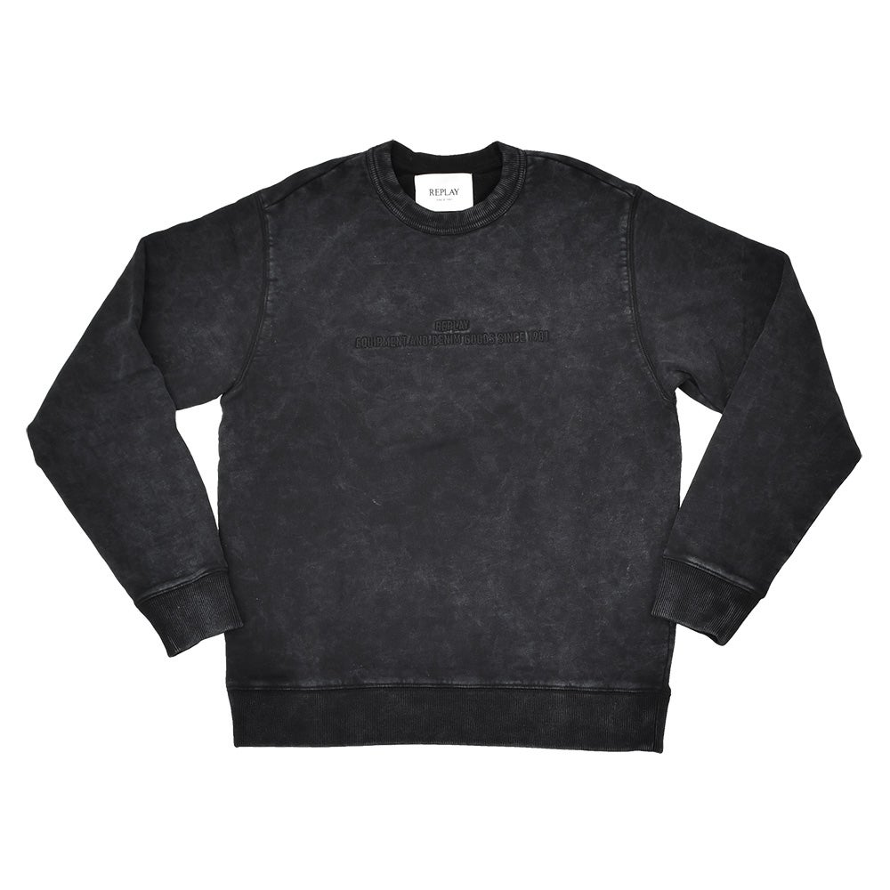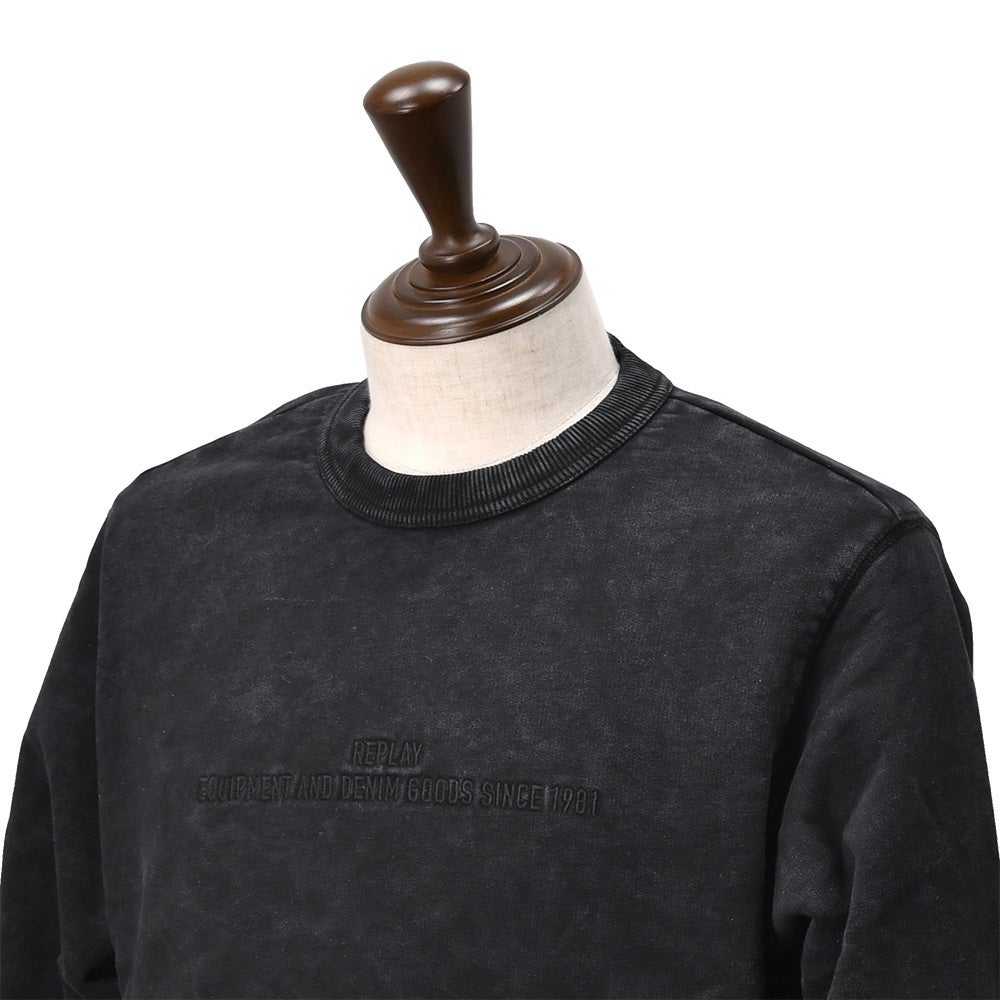 リプレイ  REPLAY 長袖トレーナー メンズ クルーネック ガーメントダイ ウォッシュ加工 コットン 綿100% ブラック 黒 国内正規品 でらでら 公式ブランド